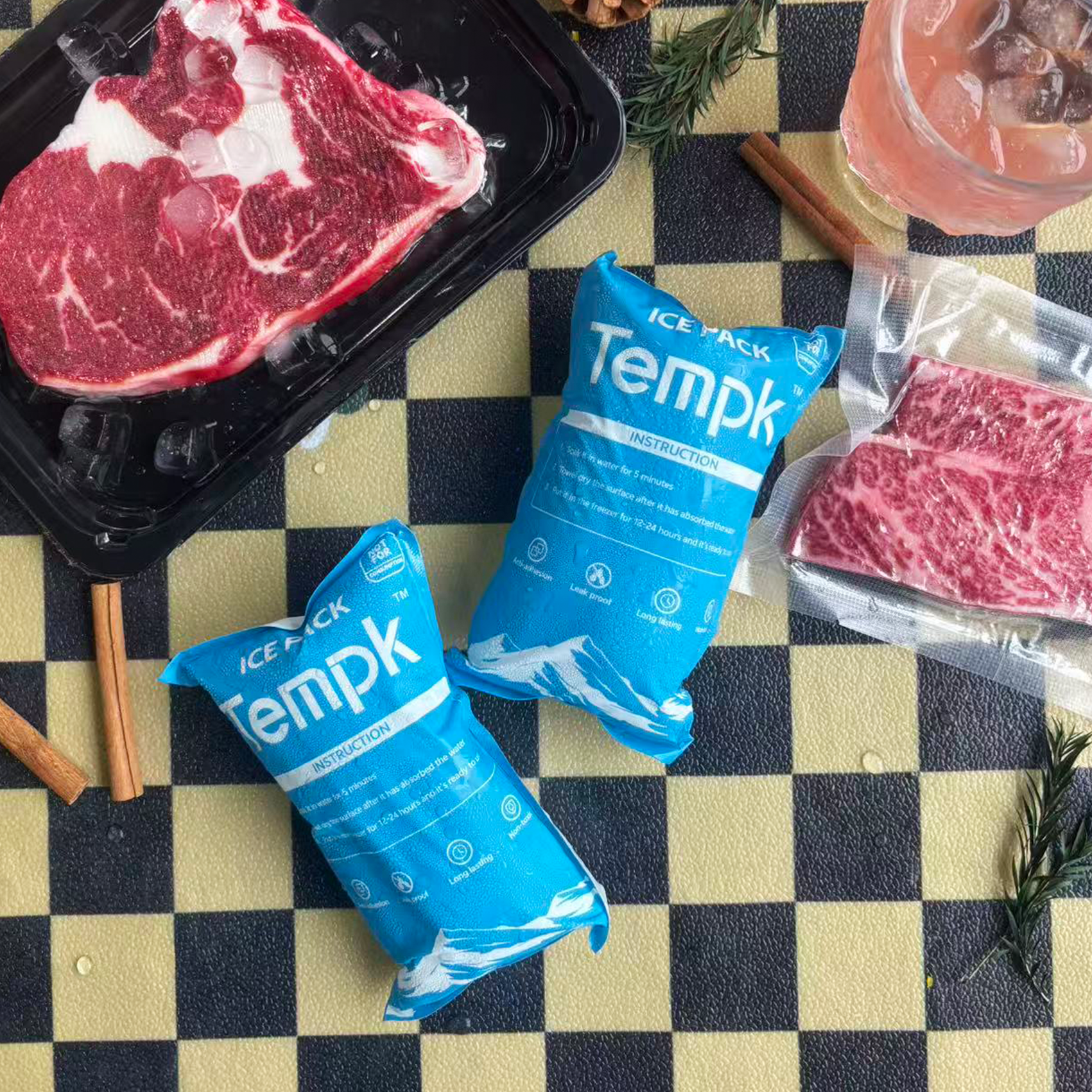 Esses pacotes de gelo seco são comumente usados em logística de cadeia fria para transportar alimentos perecíveis, como frutos do mar, carne, alimentos congelados, alimentos preparados, frutas, e vegetais, bem como produtos farmacêuticos. Eles não são tóxicos, leve, e fácil de armazenar e transportar. Antes de usar, os pacotes precisam ser embebidos em água por cerca de 15 minutos e depois congelados. A bolsa externa de papel kraft biodegradável e ecológico torna esses pacotes uma escolha sustentável para transporte alimentar e embalagem farmacêutica.